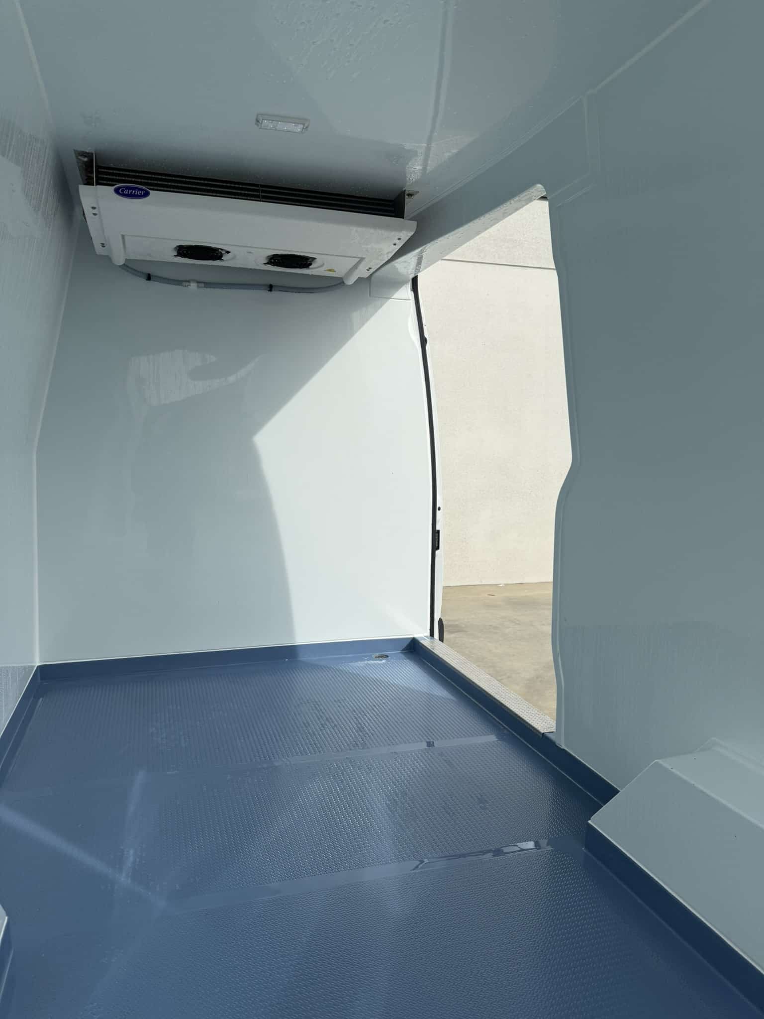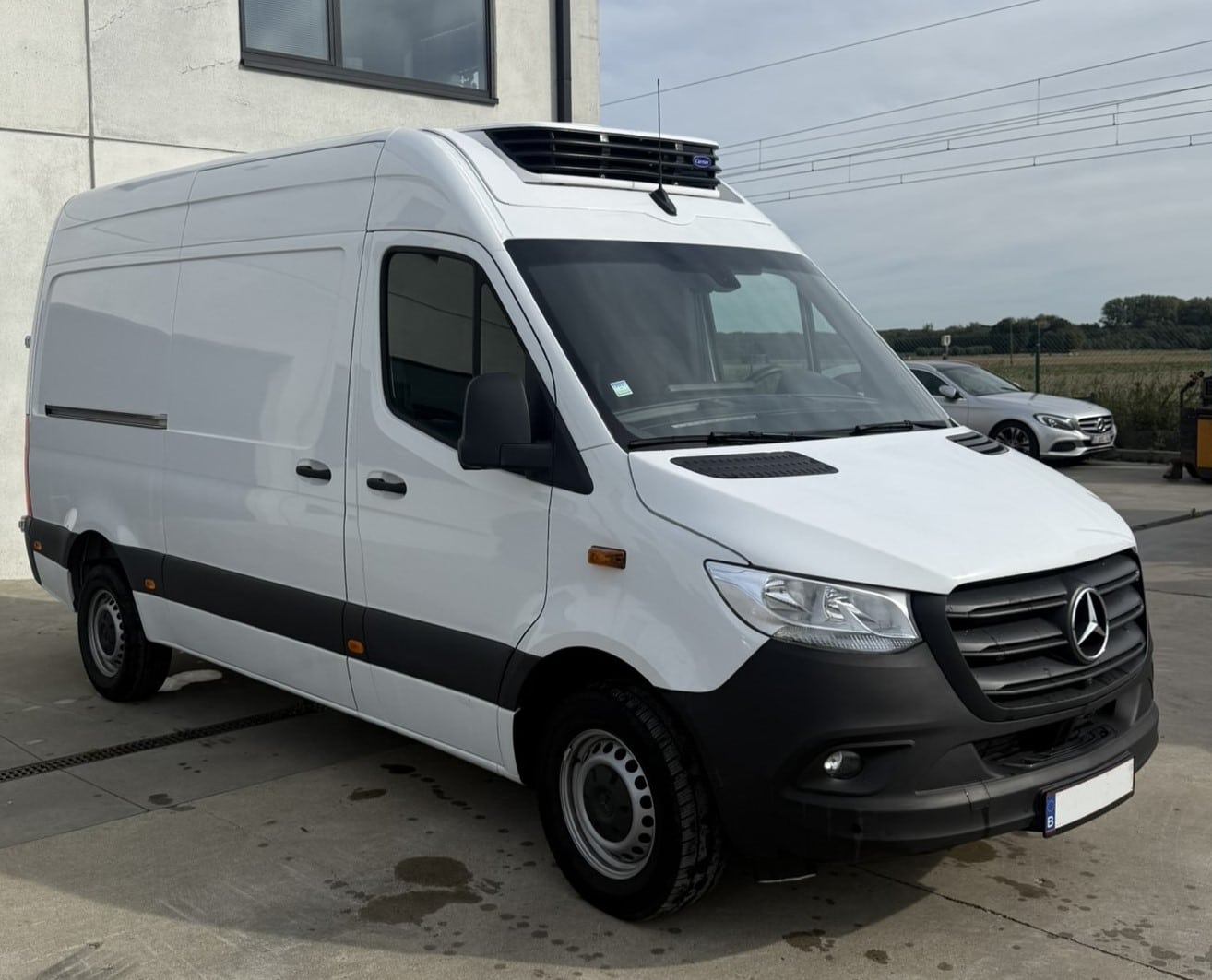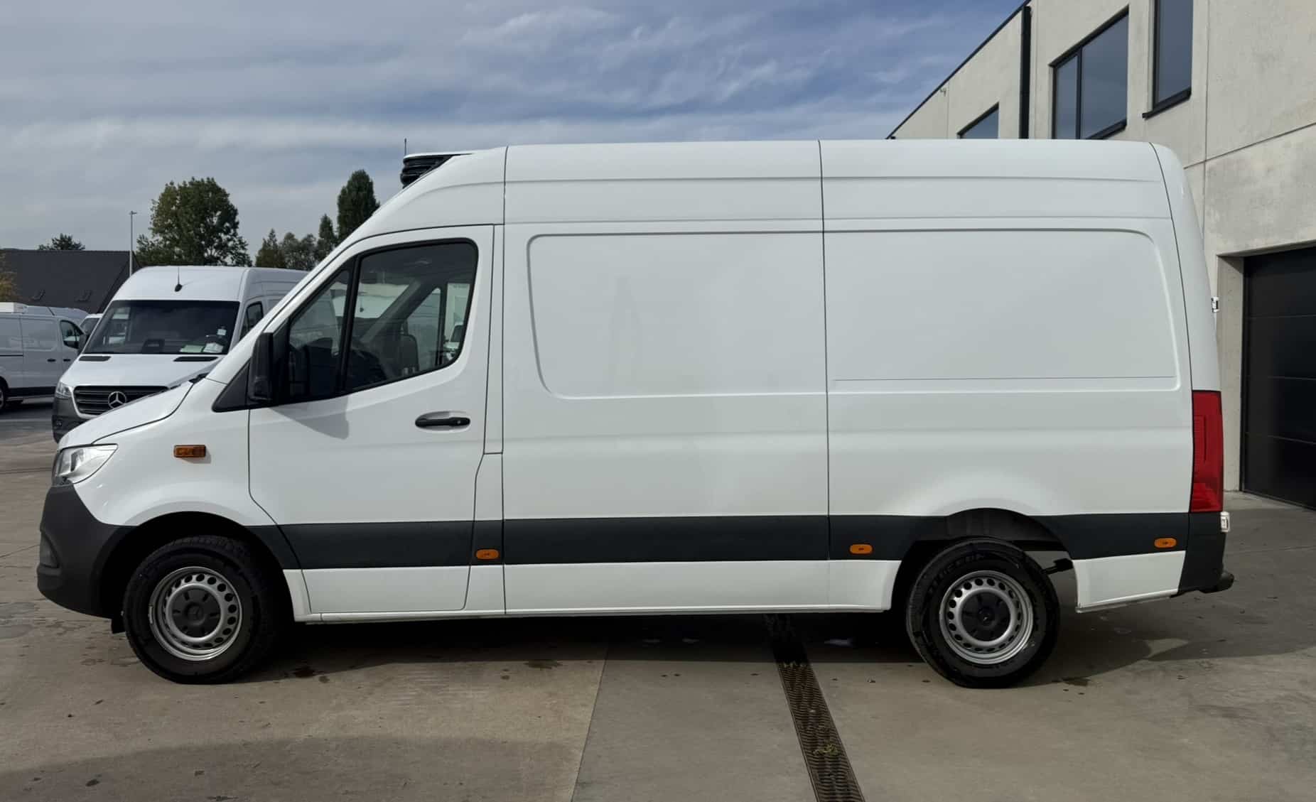 Mercedes Sprinter 317 (170PK) L2H2 koelwagen te koop. Deze jonge occasie werd ingericht met een volledig nieuwe koelombouw! Deze wagen is uitgerust met een Carrier Xarios 350 (Road + 230V Standby), waarmee je kan koelen, vriezen én verwarmen. De volledige inrichting is ATP-keurbaar, ideaal voor internationaal vervoer. Garantie Voertuig: 1 jaar Koelgroep & isolatie: 2 jaar Het voertuig wordt volledig schadevrij geleverd! Op verzoek kan een uitneembare tussenwand met ventilator geplaatst worden. Perfect voor multitemp transport: vooraan vriezen tot –20°C, achteraan koelen rond 0°C.